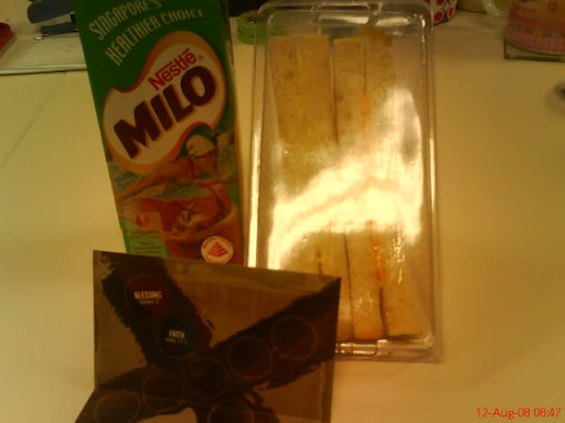 Almost didn't want to attend the prayer meeting this morning.. as I was still groggy - guessed was the after-effects of the Decolgen extra strength i ate last nite.. Oh yeah, was so traumatized by my itchy throat (I drank like a camel yesterday in the office.. THink was more than 1.5litres!) and the cold hands that I went to Dr Baines @ level 7. Oh yeah, I was diagnosed with yeah, the full Flu package.. T_T" and was given one day of MC to rest at home.. :) [which meant that I CANNOT fall sick for remaining of the year.. cuz I've only 0.5 MC left.. Sad.. but it meant that I've fully utilise the "additional" paid leave.. ahha]